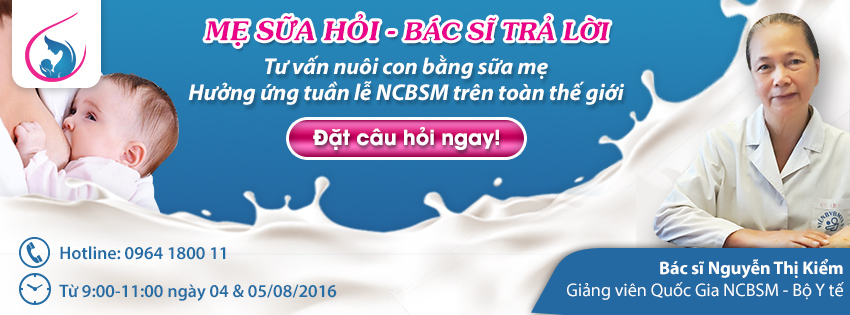 Hưởng ứng tuần lễ thế giới NCBSM, từ 01/08 - 07/08/2016, thông điệp năm nay "Nuôi con bằng sữa mẹ - chìa khóa cho sự phát triển bền vững". Ích Mẫu Lợi Nhi xin gửi tới các mẹ Chương trình Giao lưu trực tuyến “MẸ SỮA HỎI - BÁC SĨ TRẢ LỜI” với sự tư vấn của Bác sĩ Nguyễn Thị Kiểm - Giảng viên Quốc Gia NCBSM của Bộ Y tế.