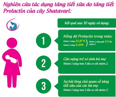 Sau 30 ngày, đo lại nồng độ Prolactin (Prolactin là hoóc môn sản sinh sữa mẹ, quyết định số lượng sữa mẹ nhiều hay ít) trong máu với kết quả: Nồng độ Prolactin ở nhóm nghiên cứu tăng gấp 3,5 lần so với nhóm đối chiếu (Prolactin là hóc môn sản sinh sữa mẹ, quyết định số lượng sữa mẹ nhiều hay ít). Cùng với đó là sự tăng cân của trẻ sơ sinh và sự hài lòng về tiết sữa mẹ ở nhóm nghiên cứu cũng tăng hơn 3 lần so với nhóm đối chiếu.