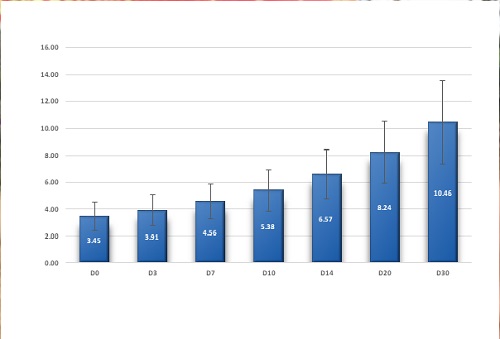 Bảng: Lượng sữa trung bình vắt ra trong 1 phút từ ngày bắt đầu sử dụng tới ngày 30