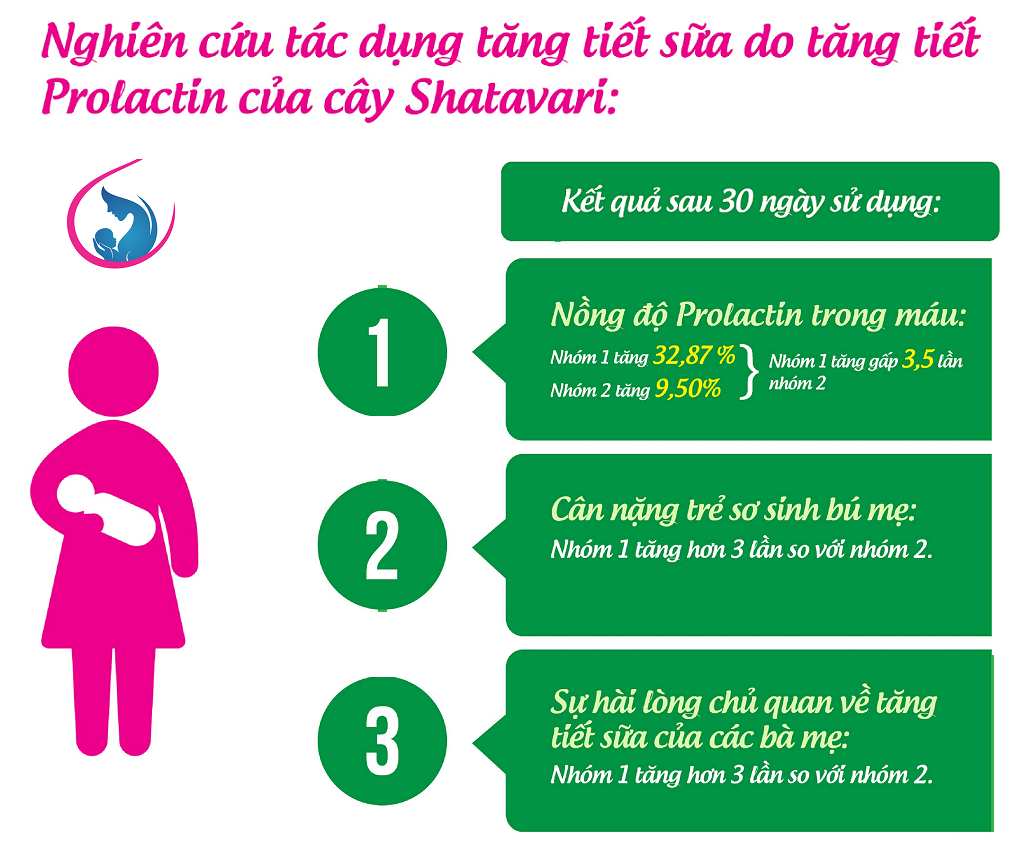 Mà “thần dược Lợi sữa SHATAVARI” chỉ tăng 3,5 lần hóc môn tạo sữa Prolactin tức chỉ tăng số lượng sữa.